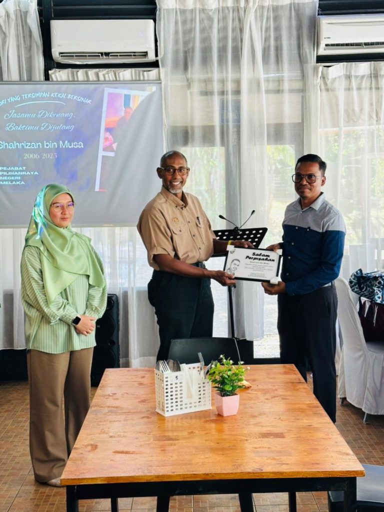 Majlis ini diadakan bagi mengenang jasa dan khidmat bakti beliau sepanjang berkhidmat di Pejabat Pilihan Raya Negeri Melaka selama 19 tahun.