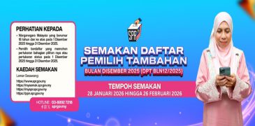 DAFTAR PEMILIH TAMBAHAN BULAN DISEMBER 2025(DPT BLN12/2025) DPT BLN12/2025 telah diperaku dan diwartakan pada 28..