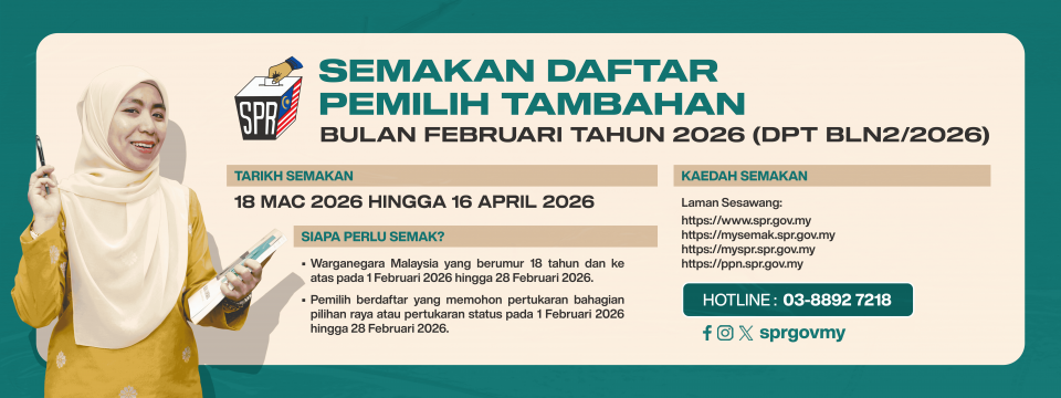 • Hotline Semakan Pendaftaran Pemilih di talian 03-8892 7218.