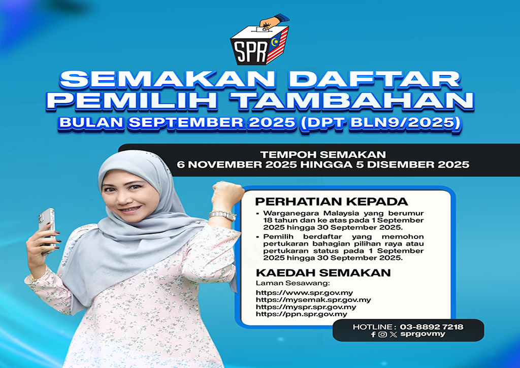 Dis Untuk makluman, DPT BLN9/2025 ini telah diwartakan pada 6 November 2025 (Khamis) dan seterusnya...